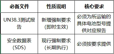 针对所有适用的锂电池危险品订舱,除其他危险品相关资料外,必须同步提交以下两份关键文件: