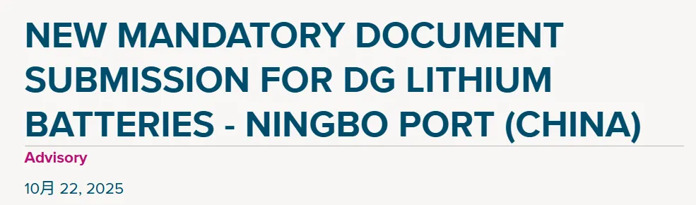 10月22日,海洋网联船务(ONE)发布关于《关于锂电池危险品——宁波港实施强制性文件提交新规》的通知公告,并要求立即生效。
