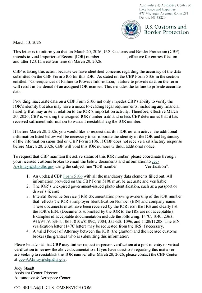 美国海关此轮行动释放的信号非常明确,低价灰色、责任模糊的时代结束了,建议联系你的货代/清关方,索要IOR合规证明,如果收到CBP邮件,紧急补充证明文件,否则编号永久无类型(void)。